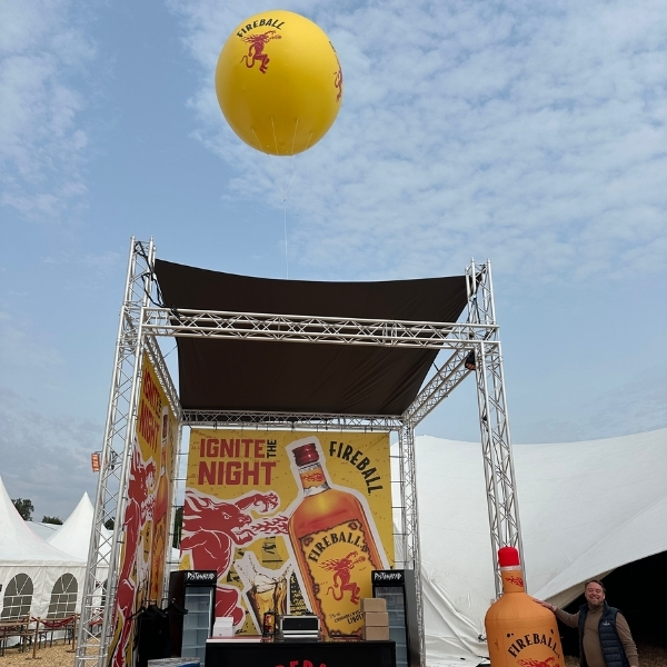 Vi såg till att Fireball stack ut på festivalen i Sverige med en 3 meter stor gigantballong med logotyp på båda sidor. Den var omöjlig att missa!