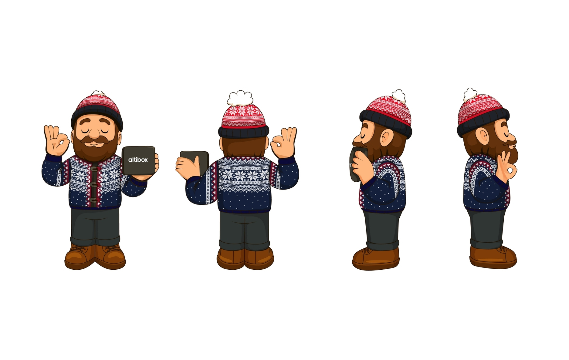 Vi började med att rita upp honom i vektorformat baserat på ett verkligt foto och gjorde honom klar för både tryck och produktion.