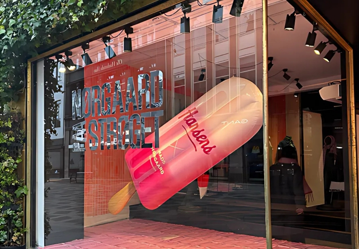 Hur fångar man blicken i hjärtat av Köpenhamn? Mads Nørgaard och Hansens Is fick hjälp av Ibsens Fabrikker att frysa tiden med en gigantisk ispinne i butikens skyltfönster!